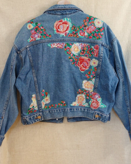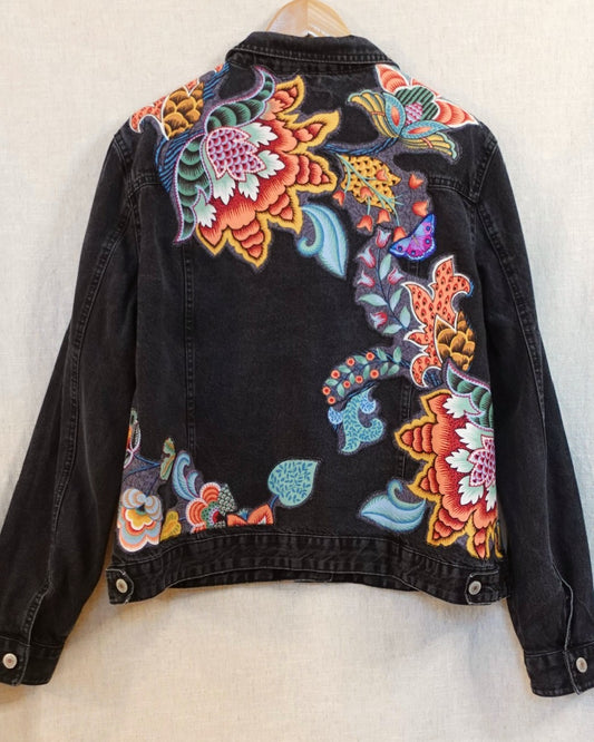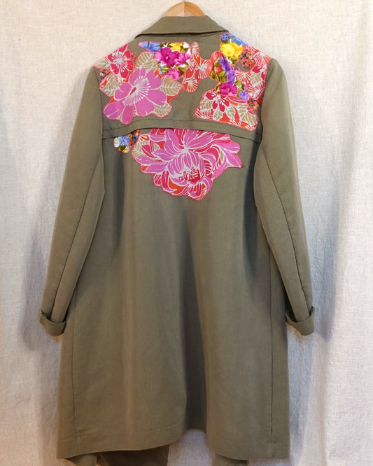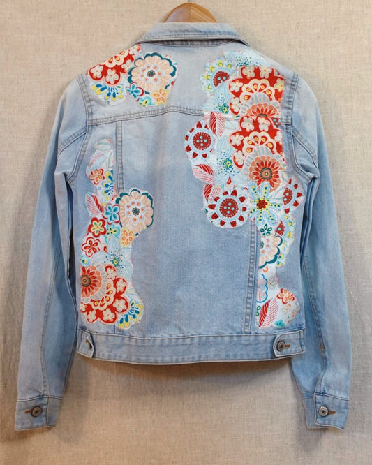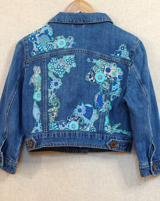Discover our collection of unique jackets with personality, crafted from preloved pieces. Each customised jacket is transformed in Hazel’s home studio, where vintage fabrics and bold designs bring new life to classic styles.